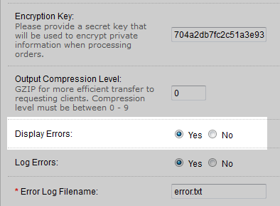 This brings you to the Server Settings tab page. From here we control various different options for your site. Scroll down until you see the Display Errors setting. Click the radio button labeled Yes to enable the error reporting.