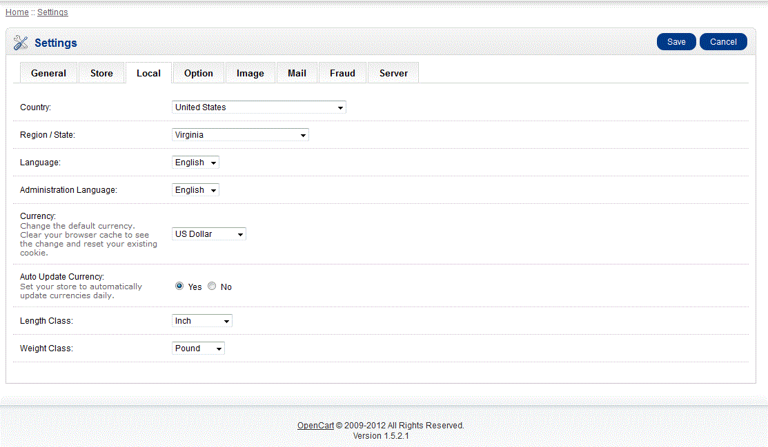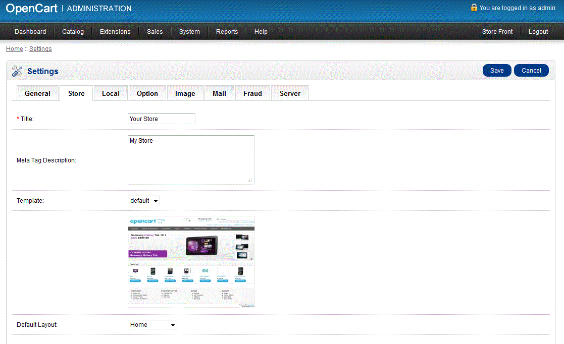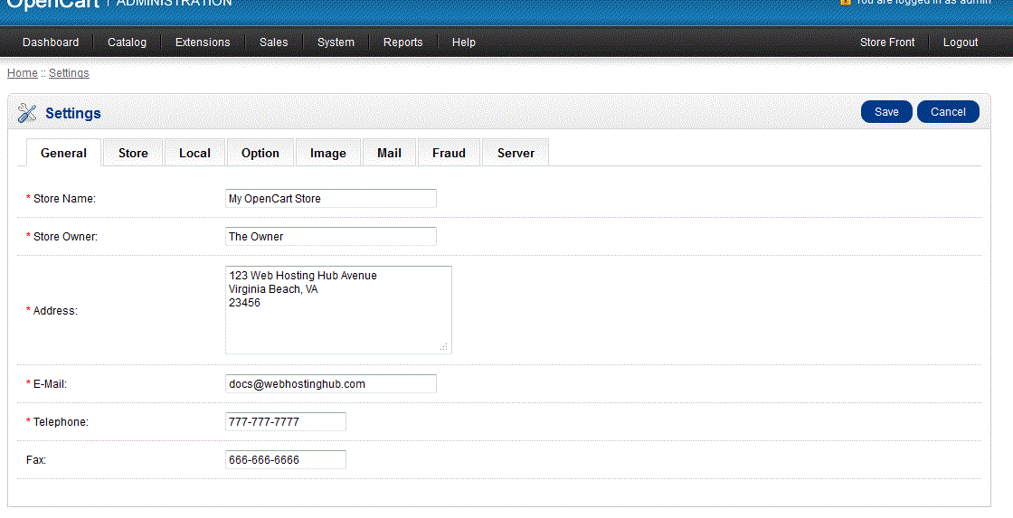 In general, the first step after installing OpenCart would be to make sure that your store is being properly identified. Making sure that these settings are put into place will enable you to get an early start on identifying your store on the internet. There many more items that can be set in this section of the OpenCart administrator, but we will only cover a few to start.