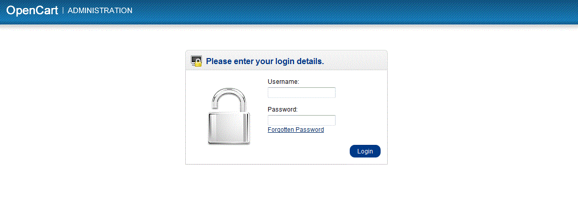 - Login to the OpenCart Administration page, typically, the default URL for the OpenCart 1.5 administration page is based on the URL where it is installed followed by a slash and then the word "admin".