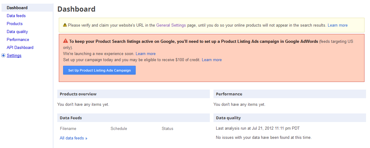 - Both feed types will require that you have an account with Google. You will need the login to an account with Google Webmaster Tools in Google and setup your store in the Google Merchant Center. The following entries give you a quick rundown of the steps to complete that process. Login or Setup an account with Google Webmaster Tools. Once you have logged in to Google Webmaster Tools, you should see the following screen: