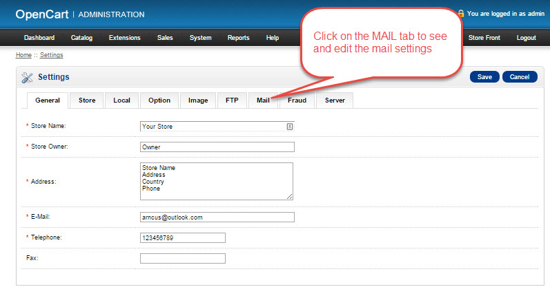Once you have the mail parameter changed and saved you will need to test it. Test the changes by using the "Contact us" form. You should also run a test with test orders and new account alerts to verify that the email notifications from OpenCart are working properly. If you continue to have problems, please make sure to submit a support ticket to our live technical support department to double-check the email functionality on your server