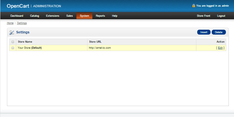 After logging into the Administrator, click on System in the menu, then select your store and click on Edit at the far right of the screen.