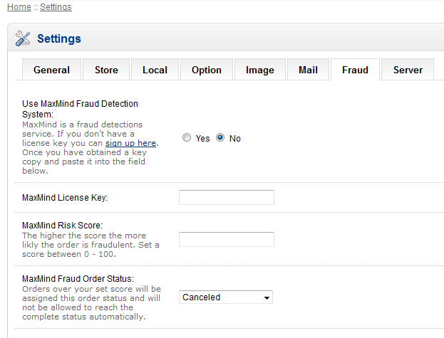 Fraud detection is important, but will require that you subscribe to a service if you wish to use the solution that OpenCart provides. This is voluntary program - it's not required if you use OpenCart. Bear in mind that you will need to research your risk profile in order accurately set your risk score. Also, remember to follow up with ANY order that may be considered fraudulent. While the service is valuable in protecting you, it must also be monitored at all times to make sure you do not get any false-positives.
