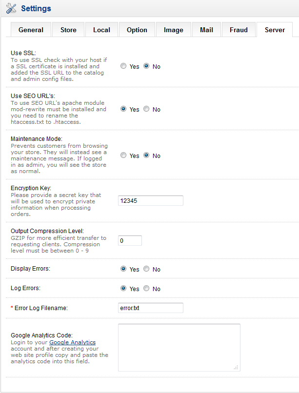 In order to use SSL in OpenCart you will need to have an SSL Certificate installed for your URL, edit your CONFIG.PHP file to have the HTTPS path, and enable SSL within the Server settings. All of these options will need to be active and correct in order for SSL to work. Note that SSL Certificates are not free - please see your host for more information concerning their procedures for installation. Remember that some payment processors REQUIRE SSL before they can process your credit card payments. Keeping your customer's transactions secure will win your customers' confidence and enable you to securely maintain sales transactions for you store.