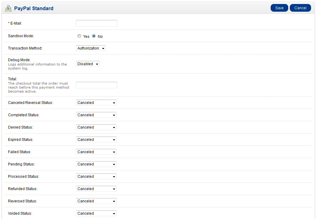 | Geo Zone | Indicates the zone that this payment method will be active |