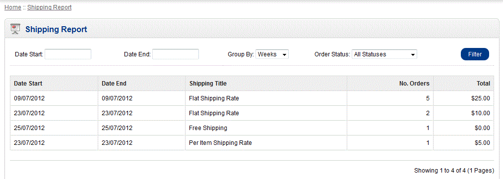 The shipping report is an Administrative report that will be available to personnel with Administration Dashboard access only. The report summarizes the status of product shipping based on the sales of your store.