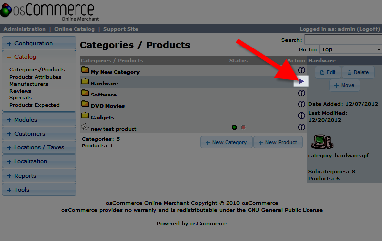 Congratulations, now you know how to work with the Product and Categories listing in Oscommerce.