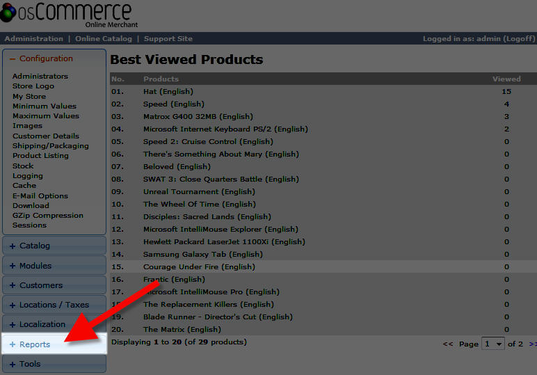In this tutorial we will show you how to access the reports in osCommerce, so you can see the recently viewed products. When you are running an online store or eshop, it is important to monitor what items are popular, so you can better target your customers.