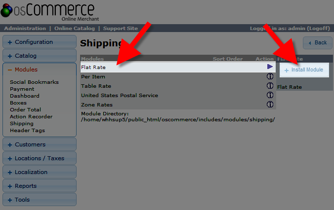 In this tutorial we will guide you through the installation and setup of the Flat Rate shipping module in osCommerce. This allows you to provide one standard shipping price for customers in a specific tax zone purchasing products from your osCommerce powered e-commerce store.