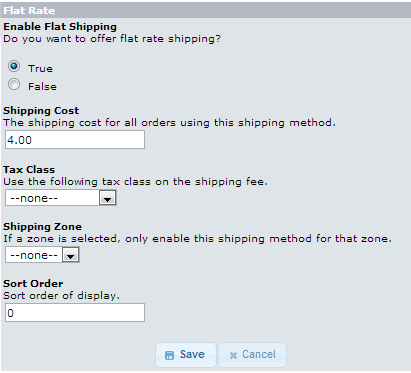 | Shipping Zone | If you select a shipping zone from this drop-down menu, the flat rate will only apply to that shipping zone. |