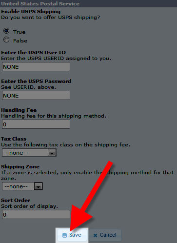 | Enable USPS Shipping | True enables, this shipping option. If you select False, this shipping option will not be available. It will still be installed, just 'turned off.' |