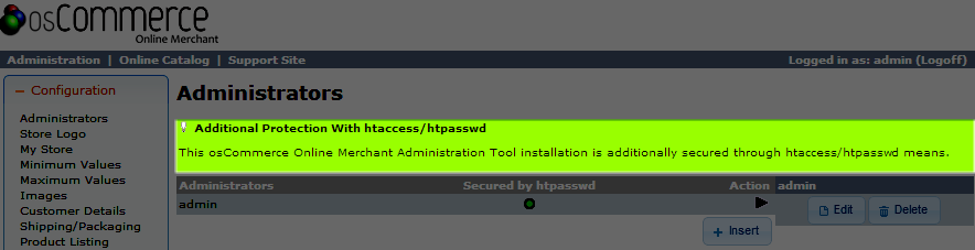 | 3. | Securing osCommerce Through htaccess/htpasswd |