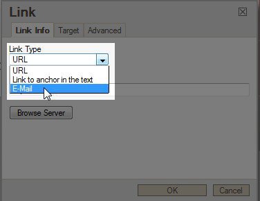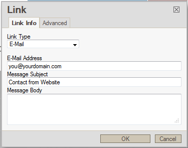 - Click OK when you've filled in the information for the email link.