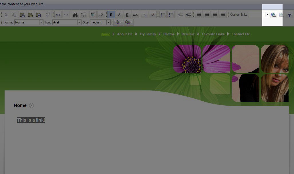 If you want to have a line of text in the body of your website link to a different web page, first type in the words that you want to become a link: