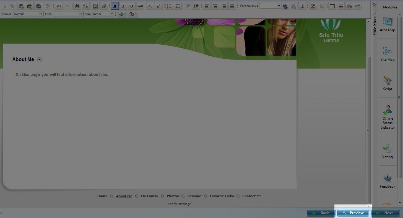 After you have picked your template and your pages, you can finally begin adding your own content. You have full control over the content that appears in the body of your website so that it will be your own unique website. If you are interested in returning to your previous course, please go to Build Your Website Structure.
