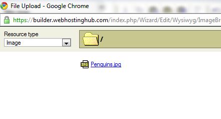 Next, click "Choose File" at the bottom to browse your computer for the image that you want to upload. Then click the "Upload" button on the right of the screen. In this example I am uploading a file called "Penguins.jpg":