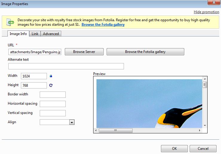 Finally, click "Ok' and the image will now be placed on your website!