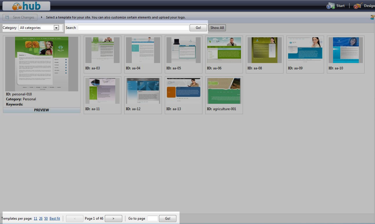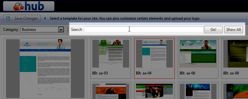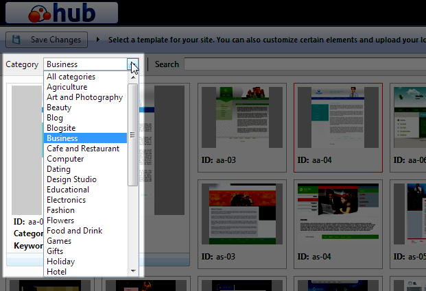 Choose the category you want for your website from the drop down, which will show the templates available that match that category.