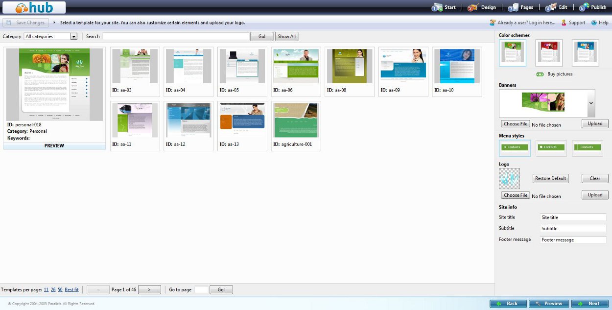 For more information on updating the look and feel of your Premium Web Builder, check our next Class, Build Your Website Structure. After you are happy with the design for your site, click on "Next" to go to the Pages section of the Premium Web Builder.