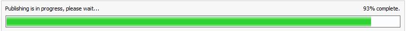The first time you publish, during the process it will slow down dramatically around 90%. This is normal, it can take 5 to 10 minutes the first time you publish depending on your connection speed. Once the site is published, you will receive a success message: