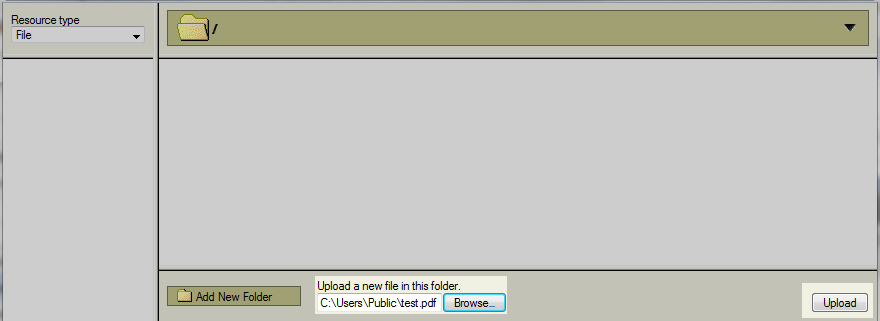 Now you will find yourself on a server browsing screen. Look to the bottom and you will see a Browse button. Click it to open up a screen where you can select a file from your local machine.