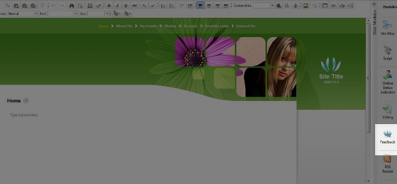 In the Premium Web Builder, you can insert a Feedback Form that creates fields that visitors can fill out and submit electronically. You specify the information that you are requesting from your visitors (such as name, phone number, email address, etc.) to ensure that you receive the information that you are looking to collect. There is also a "comments" field which gives you visitors a place to give their own comments.