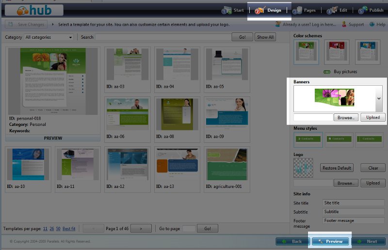 Each template includes a banner at the top of the page. You can change this banner, either using one of the included banners or by