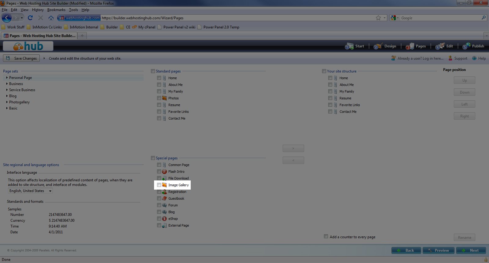 After you have logged into your Premium Web Builder, go to the 3. Pages section. Check the box next to "Image Gallery" page under "Special pages":