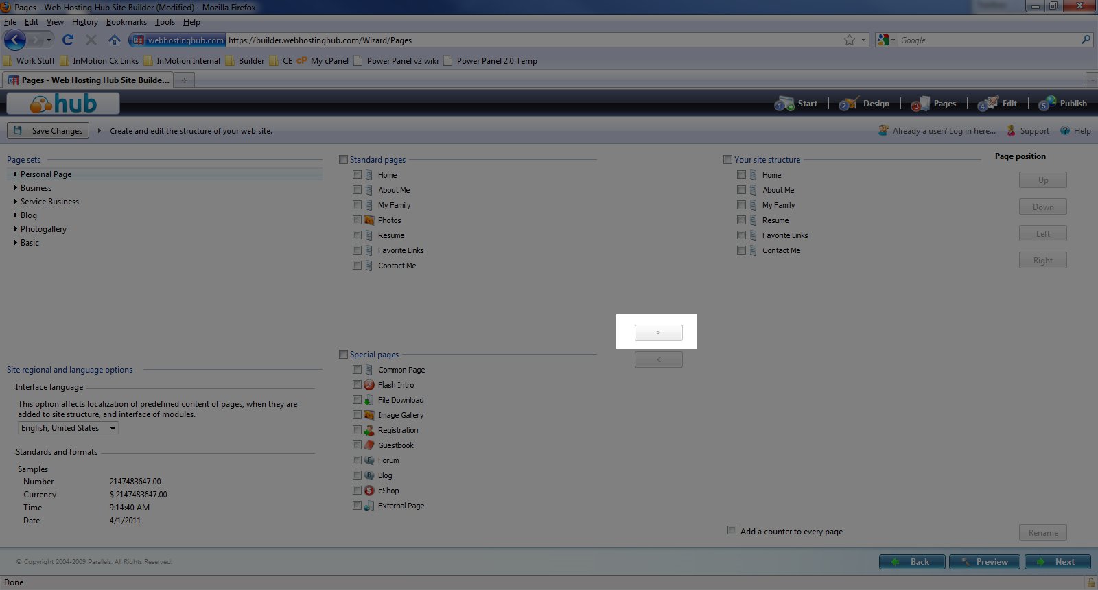 Then click on the > arrow to add the Image Gallery to "Your site structure"