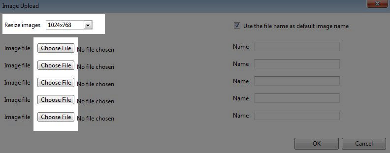 Now you will browse your computer to upload your images. You can upload as many as you want, in this example we will upload five images. By each "Image File" option, select "Choose File" to browse your computer.