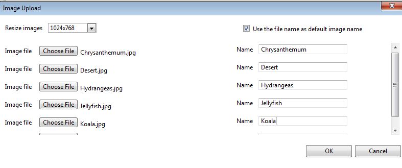 Once you have uploaded the photos and have changed the names of the photos if needed, click on "OK" and it will bring you back to the Image Gallery. Now you see your images listed: