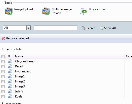 To delete the default images, click the check boxes by each one, and then click on "Remove Selected:"