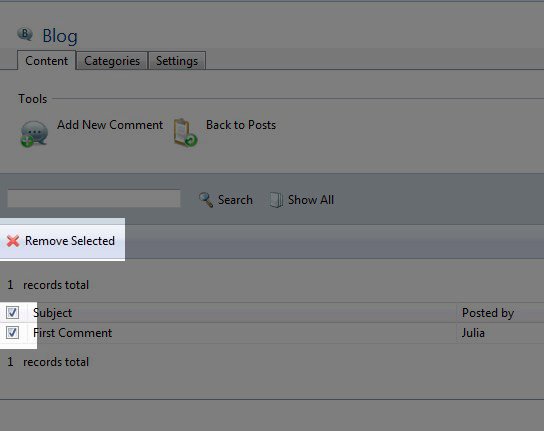 Once you have selected the comment that needs deletion, click on "Remove Selected." This will remove the comment from your blog. In the next guide we will show you how to change the look of your blog in the Premium Website Builder.