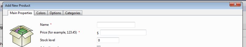 If you sell products that are available in different colors, you can offer your customers their choice of color by configuring it within the "Colors" tab.