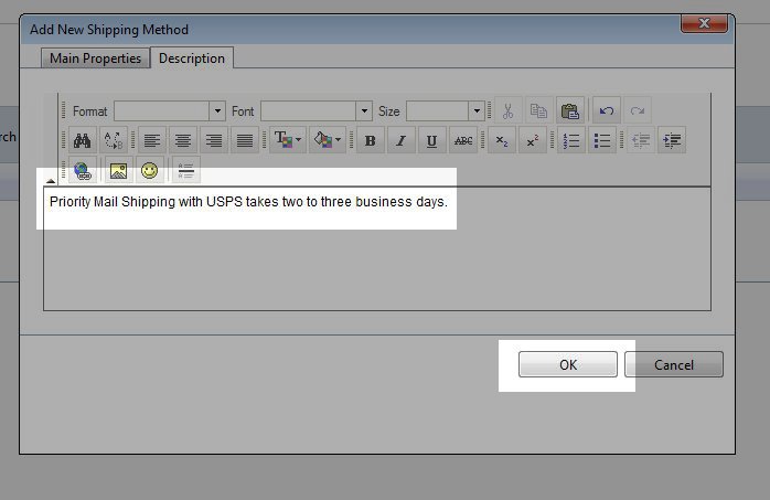 3. Click the "Description" tab and then type in a description for this shipping method.