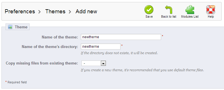 - Click the green Save button. Your new theme should now appear in the themes list as shown below.