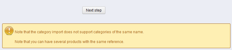 Before clicking on the NEXT STEP, please note the warning in the yellow box. CATEGORIES CANNOT BE THE SAME NAME.