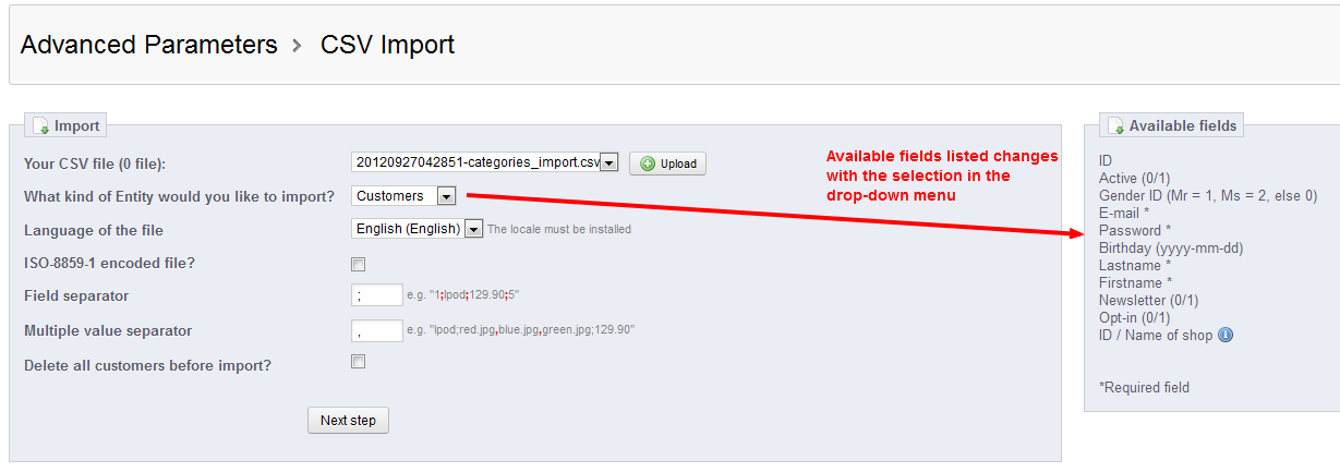 How to use the CSV Import Option in the Advanced Parameters in PrestaShop 1.5