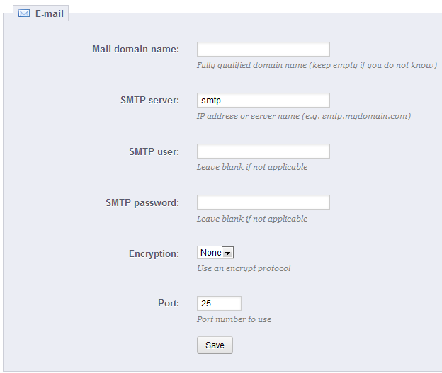 | SMTP password | SMTP server user password |