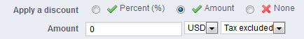 - Select the AMOUNT field to type in the currency amount you want to use for the discount.