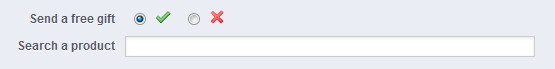 When you click on the radial button for the "SEND A FREE GIFT" cart rule action, the "Search a product" field will appear.
