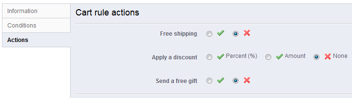 Setting the Cart Rule Actions in PrestaShop 1.5