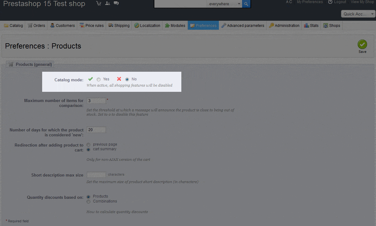 How Enable Catalog Mode in the Prestashop 1.5 Administrator