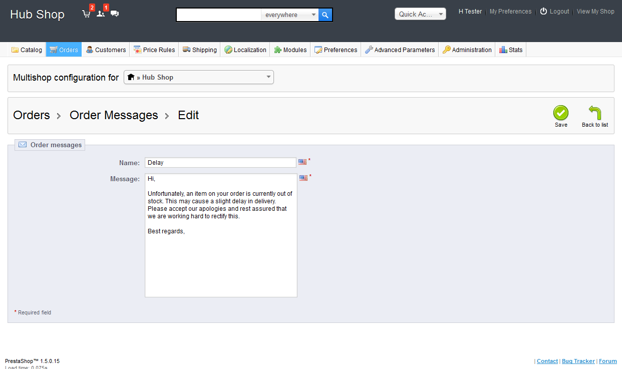 Order messages let you send customized messages to a customer so as to inform them of the current status of the order. The following tutorial will show you how to use the PrestaShop 1.5 interface to add, edit or delete order messages for your customers.