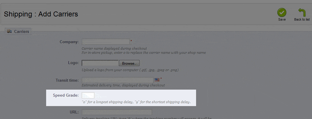 Shipping carriers may have different options where yo need to set a Speed Grade depending on their different services. For example, ground delivery versus air delivery. and the ground delivery with multiple delivery times such as 1-day or 2-day. The following tutorial allows you to set the Speed Grade for your Carriers in Prestashop 1.5.