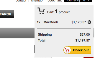 Billing behavior for your carriers may need to be changed depending on your shipping needs or other possible factors. The option to change the behavior ranges from leaving it at the default behavior to setting it per total price or total weight. Make sure to select the best option that fits your shipping needs. The behavior that you select will be transparent to the user (other than the shipping cost), but they will see it in their cart and final totals where shipping cost is noted. In the screenshot below, you can see where "shipping" cost is totaled, but the customer will not see the method by which the billing for the carrier is calculated: