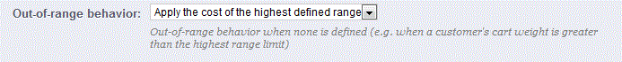 Managing the out-of-range-behavior for shipping is important because it will limit or set the shipper that the customer can use. One good example of using this option is to create a specific carrier for this purpose. With multiple carriers, you can set one specifically for the out-of-range-behavior. The customer will only see the carrier available to them. It will not say "out-of-range", but simply be the only option for shipping, unless you have more than one shipping option for an out-of-range situation. With only one shipping option, the customer will see the following screenshot: