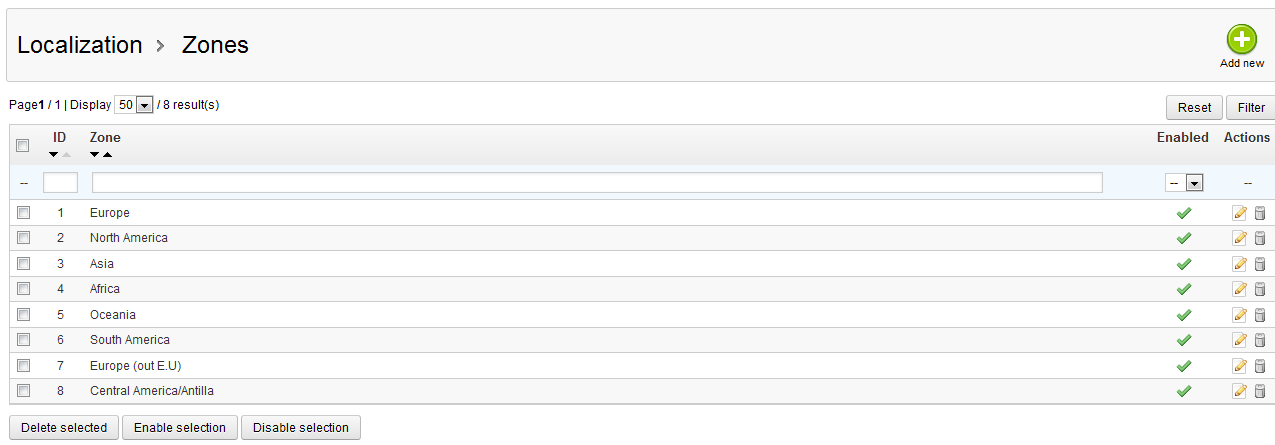 Selecting the zones for shipping may be confused with Shipping option to choose the zone(s) that a Shipper/Carrier can deliver (go to Choose the Zones Where a Carrier is Available in PrestaShop 1.5). The option to select the zones for shipping lets you decide the areas that can be serviced by a selected carrier - basically, this creates the zone list which is used in the interface for choosing where a shipper/carrier will deliver. The following tutorial shows how to define the zones for shipping in PrestaShop 1.5.