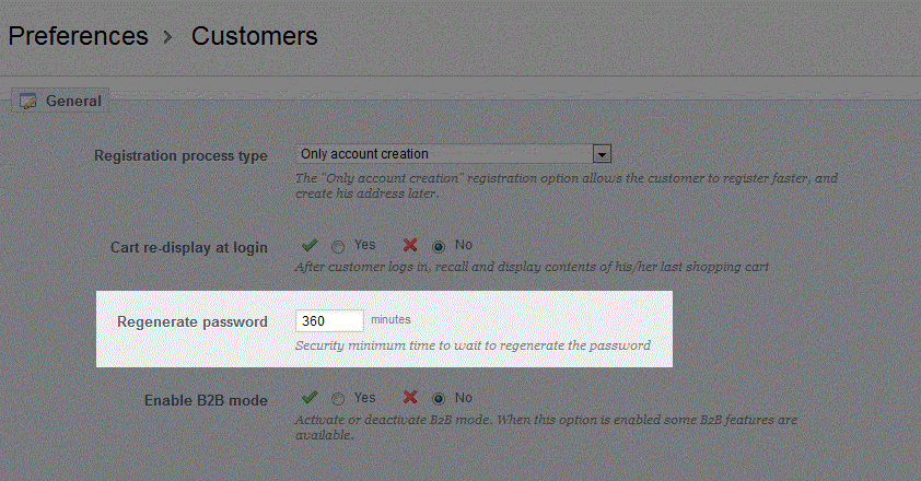 One of the security precautions to prevent robots or hackers from simply causing login failures and then rebuilding the password is to set a password re-creation or regenearation time. The following tutorial will guide you in setting the password regeneration time in the Prestashop 1.5 Administration Panel.