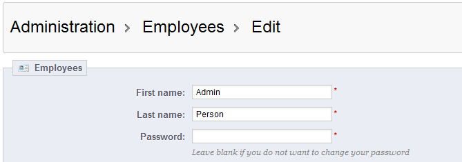 In order to edit the password, click on the Password field and then change it. Note that only Super Administrators and Administrators (who have permission to change employee settings) will be able to make this change. See Add or Edit Permissions for an Employee Profile in PrestaShop 1.5.